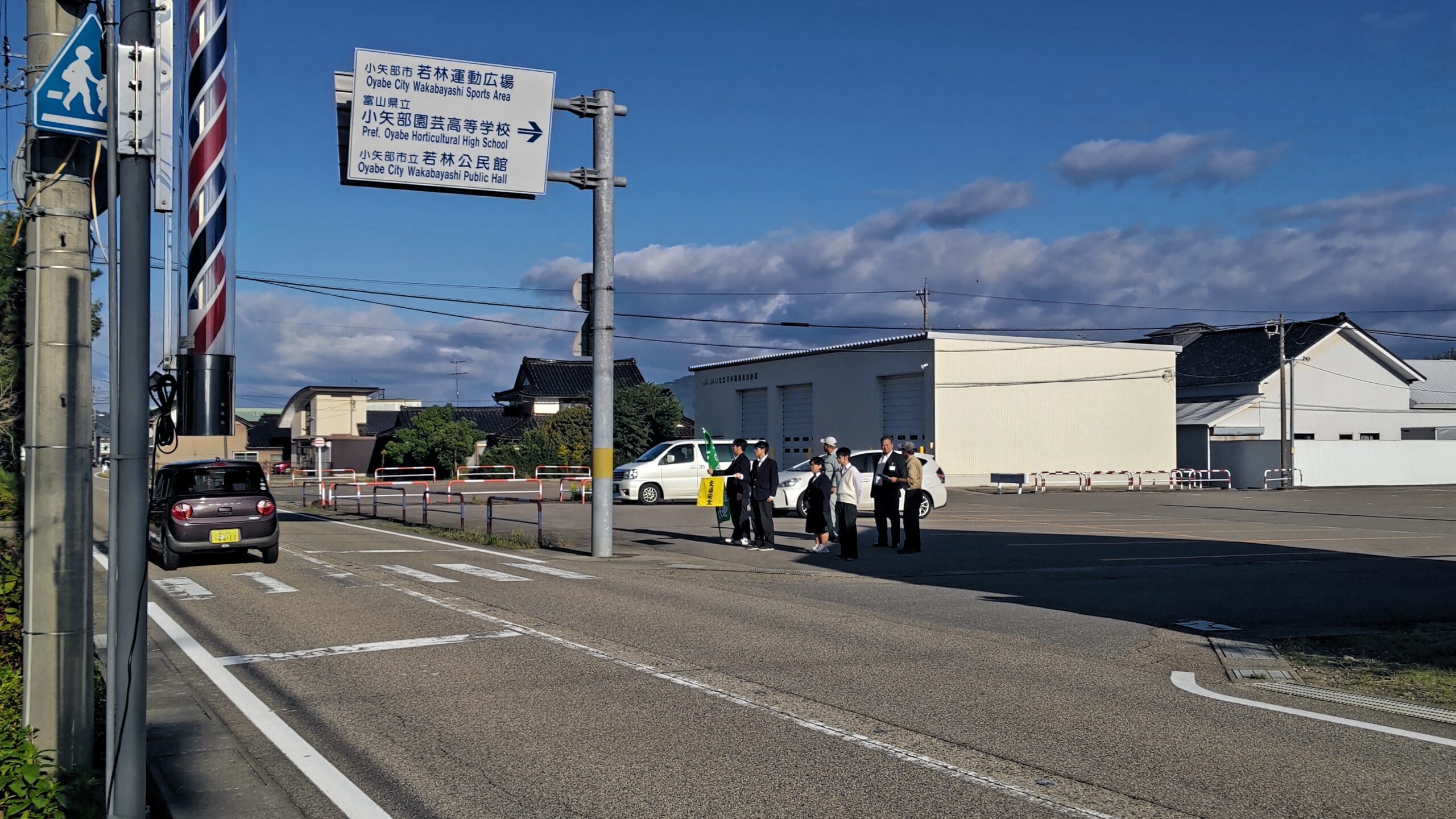 10月21日、22日と市内水牧交差点において、大谷小学校、大谷中学校、小矢部園芸高校の3校とPTAが合同で、23日には校内のあいさつ運動を行いました。