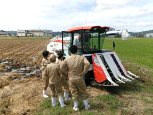 1年次の生徒たちは食味&収量センサー等を搭載した高性能コンバインの操縦と食味、収量のモニタリング機能の体験をしました。