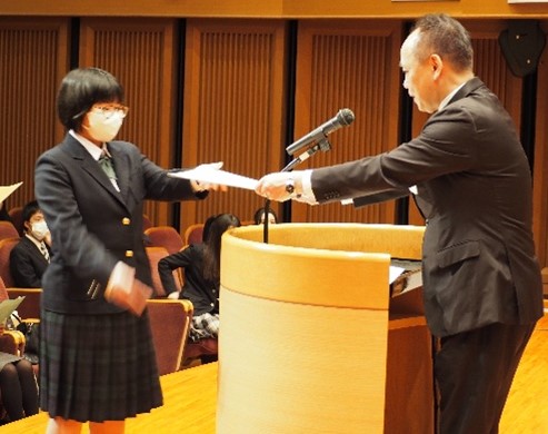 - 論説賞を受賞した本校生徒(2年次)
