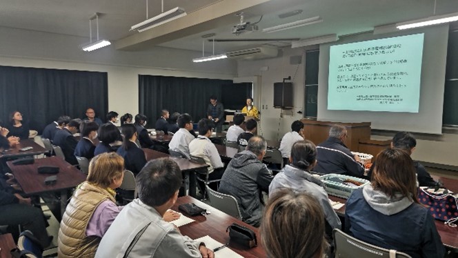 日本造園建設業協会 女性活躍推進部会長 酒井一江先生(山口県:淡窓庵 社長)から、若手入職者を促進するための一助として「造園の魅力を伝える出前講座」のお話をしていただきました。