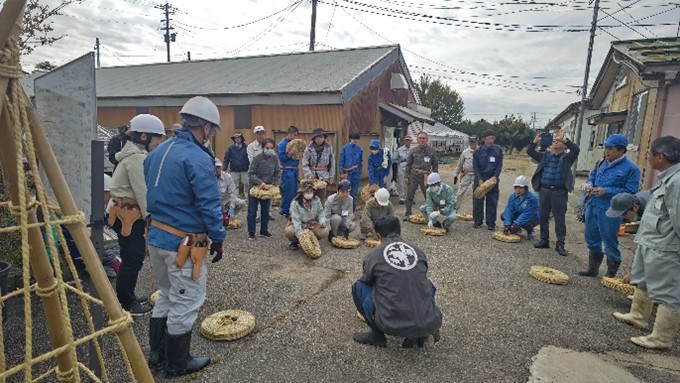 その後、西野進樹園㈱代表取締役 西野暢優先生から 北陸地方ならではの文化として「雪吊り」の実践的な講習会を行いました。