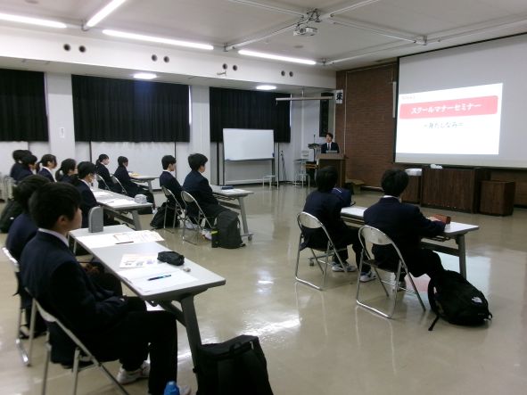 砺波青少年自然の家でスマートフォン講習や制服の着こなし講座を受講したり、体育館で