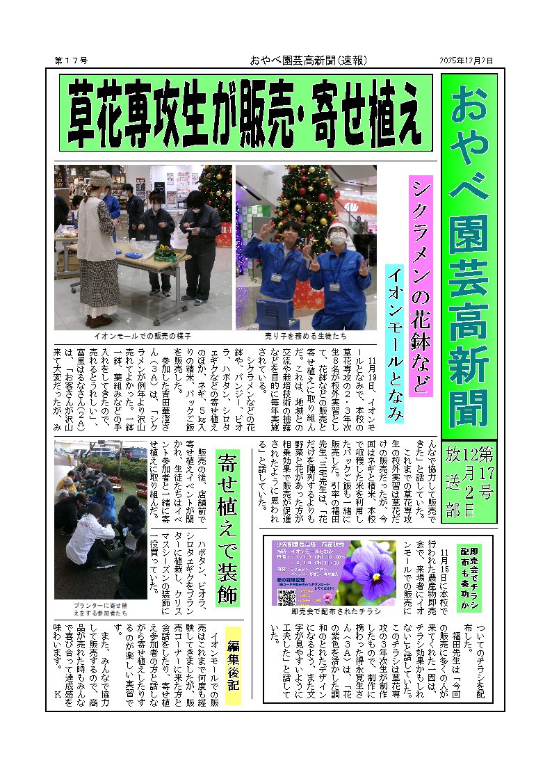 | 小矢部園芸高校新聞 |